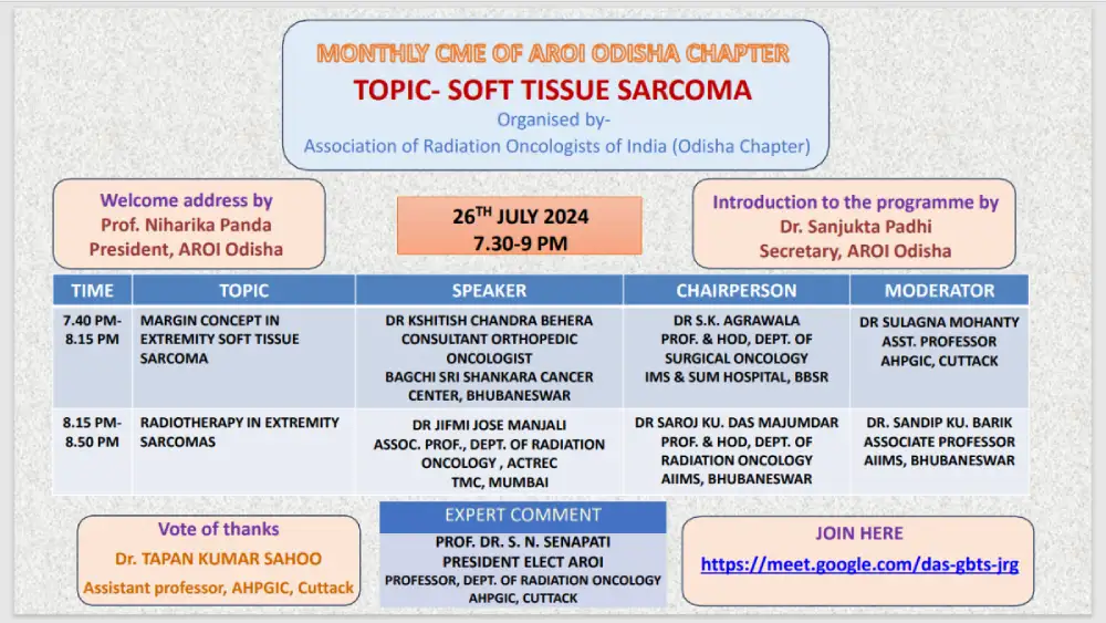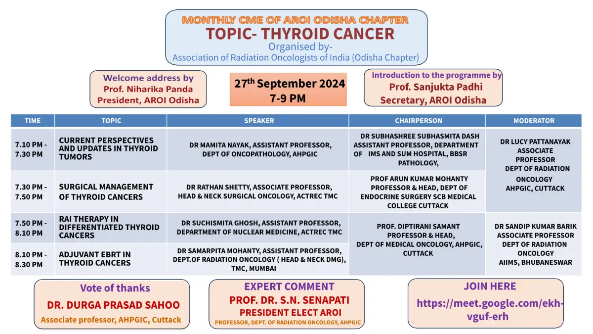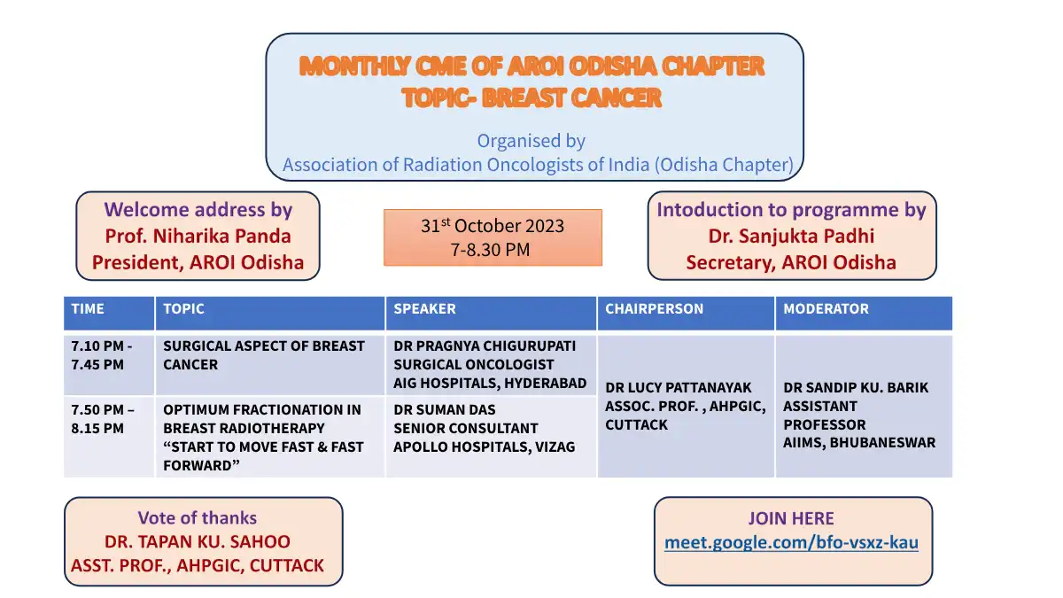 The Association of Radiation Oncology of India (AROI) Odisha State Chapter is a vibrant community of radiation oncology professionals dedicated to enhancing cancer care through education, research, and collaboration.
